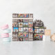 Create your own personalised 12 photo collage wrapping paper with your custom images on a rustic farmhouse style wooden plank background. The design also features your family name and a "Love" handwritten script. Add your favourite photos, designs or artworks to create something really unique.