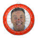 Custom Photo Dartboard template with personalized text and RED FF2600 round photo framing surround (other color surrounds available in store). Your face on a dartboard. One click personalize upper and lower text plus replace image, or full customization via Edit Screen. Regulation size with metal frame and 6 brass darts (Stars and Stripes + Union Jack flights). A fun gift for a darts player.