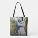 Design your own 2 sided photo tote with your custom photo a featuring full bleed image template. Easily upload your own photos with your own character and loved subjects and write your own text or names. Replace this design with your beloved photo. This version shows grandma and her BFF dog.