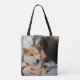 Design your own 2 sided photo tote with your custom photo a featuring full bleed image template. Easily upload your own photos with your own character and loved subjects: Kids, dogs, grandparents. Create the same photo on each side or use a different photo on each side.