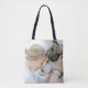Design your own 2 sided photo tote with your custom photo a featuring full bleed image template. Easily upload your own photos with your own character, family members or you and your beloved pet.