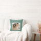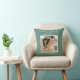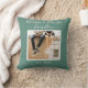 Custom photo, family name, and date throw pillow in a lovely soft grey/green.