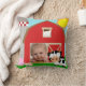 You can add your child's photo to our Farm pillow easily before ordering. This cute and colourful custom farm theme pillow features a big red barn, silo, sun, cow, pig, cat, and chicken!