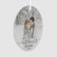 Commemorate the first Christmas of your marriage with this beautiful modern keepsake ornament. The dark pine green text reads "Our first Christmas as Mr & Mrs," with the words "Mr & Mrs" in elegant handwriting script with flourishes before and after. Replace the sample image with your favorite photo, and add your last name and the year. A white gradient filter helps make the text pop.