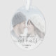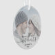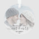 Commemorate the first Christmas of your marriage with this beautiful modern keepsake ornament. The grey text reads "Our first Christmas as Mr & Mrs," with the words "Mr & Mrs" in elegant handwriting script with flourishes before and after. Replace the sample image with your favourite photo, and add your last name and the year. A white gradient filter helps make the text pop.