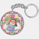 Custom Photo Fun Vibrant Summer Green Bright Happy Pink Mother’s Day Keepsake Keychains. A bold, colorful key ring to celebrate your mom. The main colors of the border are bright spring green and vibrant summer pink. A joyous, bold, tropical color inspired keyring for an important celebration. The key chain makes a pretty key organizer, and as a dopamine dressing decorative keepsake. Replace the photos with one of your mommy or her children. Get as a gift for your wife, from the kids. A cheerful, custom photo gift for her.