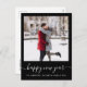 Custom Photo Happy New Year Black White Script Holiday Postcard