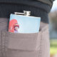 The flask itself is fine. It’s a cheap flask, obviously bought in bulk, however am prepared to overlook that. Given that it is a personalized item, I would have liked to have seen gift boxing instead of the generic packaging. Terrible printing, and/or quality. It’s a cheap, tacky vinyl. It is not cut straight and is also applied in a way that it is overhanging the bottom, causing the glue to catch on items and it will eventually roll and tear, damaging the wrap.