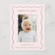 This charming customisable Christmas photo postcard features a minimal wavy squiggly photo frame template with pink bow and burgundy stripe backside. Showcase your favourite family photo add elegance and warmth to your Christmas greetings.