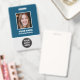 Give your team a polished, professional look with this fully customisable name badge featuring a photo, job title, company logo, and barcode. With a clean blue and white design, it’s perfect for corporate offices, conferences, trade shows, schools, and events. Add your employee's photo, name, title, ID number, and website or company info on the back for a complete and functional design. Durable and easy to display on lanyards or badge clips, this ID card combines style and practicality for everyday use.