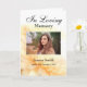 A beautiful photo framed "In Loving Memory" keepsake card with a golden floral background. A simple quote is printed inside, but you can change it with your own text, or delete it. Easy to replace template photo and change text colour or size.