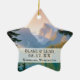 Commemorate a special event or gift a meaningful keepsake with this customisable ornament. Featuring a beautiful mountain and lake landscape, this ornament allows you to add names, date, and location in a stylish font overlay. Perfect as a wedding memento, holiday decoration, or gift, it captures the serenity of nature and the warmth of personal details, making it a cherished addition to any collection.