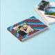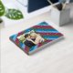 Guest book with a tiled striped pattern that matches the two flamingos at dusk that is on the back of the book. The front features a photo of the happy couple, which can be replaced with a real photo of the couple. Personalise this template with text information and photos.