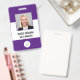 Custom Photo Logo Barcode Modern Purple White ID Badge