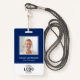 On the front, you'll find dedicated spaces for your photo, first name, last name, title, and logo, while the back offers room for your logo and additional text. This dual-sided design enhances visibility and professionalism. You can choose from different attachment styles: lanyard, metal clip, retractable or none.