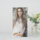Elegant graduation announcement, done on a long skinny card stock, a custom photo of the grad, as the background. Model sample photo courtesy of Lorri Lang. On the backside of the announcement is orange, with all the graduation and grad's information. Personalise the year, on the front and the back text and photo to suit your needs.