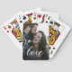These playing cards feature the word love in a stylish script font over a custom photo. This design features a single photo of you and your loved one. Personalise with a family name or remove text.