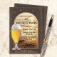 Surprise birthday party invitation with your custom photo (optional). The framing is a brown textured design with light sparkles. Great for a beer lover.