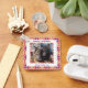Custom Photo Merry Christmas Jolly Pet Cat Kitten Pun Key Ring. A square photo keychain to celebrate your pet at Christmas. Replace the photo with your own of your fur baby; or of yourself and your pet. Add your own message or greeting using the Personalise button. A merry maximalist, geometric pattern design for Christmas. A cat mum or cat dad will love being celebrated with this bright golden yellow, festive purple and happy pinkish red patterned keyring, with a picture of their own cats or kittens. A modern take on traditional decorations. A budget friendly key fob gift for organising the home and office keys, before having a festive Christmas and Happy New Year.