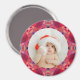 Custom Photo Merry Christmas Modern Colorful Round Magnet. A festive, jolly and bright Christmas pattern circular magnet for decorating your kitchen fridge and home office magnetic noticeboard. Add your own photo to celebrate family memories. For budget friendly maximalist Christmas home decor keepsake presents. In traditional, warm Christmas colors of red, pink and orange. Makes a great, budget friendly gift for her.