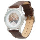 I like the illustrative watch with the lady on it. It is a great reminder that I am blessed and it has a very sturdy leather band. The colors are true and vibrant. Love the color of the Leather also. Very nice.