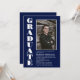 A modern minimalist navy blue and white custom photo graduation party invitation.