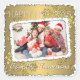 Unique, classic, trendy, pretty and decorative Holiday season greeting sticker. Fun faux gold snowflakes pattern on shiny metallic looking background. With room to customise with photo of your choice, and personalise with your family name.