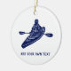 The front of this ornament features a simple illustration of a kayaker in a kayak in navy blue with your message below. The reverse side is ready to be customized with your favorite kayaking photo or other special picture.