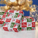 Custom green, red, and white "Merry Christmas" wrapping paper with the family name, 2 custom photos, and a tree pattern. Great to wrap your xmas presents this winter and Holiday season.