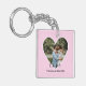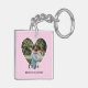 Custom Photo Pink Heart Frame Modern Calligraphy Key Ring