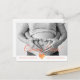 Your modern coming soon photo pregnancy announcement card with a your creative photo added and your names and month of baby's arrival. Cute peach border with painted heart. You may add your own photo.