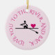 A lovely pink hanging ornament with a rowing theme. On one side is a pictogram of a rower transporting a heart, with editable text in deep pink: "LOVE YOU TO THE RIVER AND BACK". On the other side, upload your favourite photo. For Valentine's Day, for Christmas, for any romantic occasion.