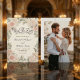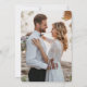 Share your special moment with this country-inspired design, featuring earthy timber tones, vintage lace details, and a personalized engagement portrait.This design centers your full-bleed engagement picture within an elegant, distressed dark brown barn wood-style background. The composition is accented by a delicate, off-white printed lace-style border and utilizes sweeping, traditional script typography for the couple's names to create a balanced, country-chic aesthetic and clear visual hierarchy. This is a flat printed image with a faux wood and lace effect, not actual raised material, authentic timber, or fabric.
