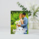 Custom Photo Simple Elegant Save the Date, Hand lettering with Brush Stroke Lighten at the front and Couples Initial at the back Postcard Design.