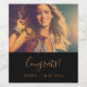 Personalise and add photo and a text. The word Congrats is written with a modern hand lettered style script. Black background, white text. For both him and her. For a celebration, birthdays, graduation, wedding.