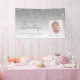 Welcome guests with this chic, glamourous 90th birthday party photo banner, featuring a sparkly silver faux glitter drip border and silver ombre background. Easily replace the sample image with a photo of the guest of honour. Personalise it with her name in grey handwriting script, with the birthday and date below in grey sans serif font.