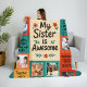 Custom Photo Patchwork Blanket – “My Sister is Awesome” Quote with Personalizable Pictures
