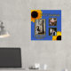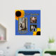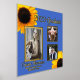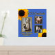 Elegant foil graduation print, done in a blue, with three gold foil frames for your grad's photos and pretty graphics of sunflowers.  Personalise the gold foil text and the photos for a great graduation memory.