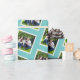 Create extra special wrapping paper for weddings and other special occasions when you upload your own square shaped photo to this gift wrap. It features your photo inside of a white scalloped frame set against a teal or turquoise blue background. Not crazy about the background colour? Select the option to customise further and change the background colour to your preferred shade.