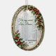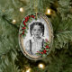 An oval shaped Christmas ornament in which your custom photo and message are framed in a beautiful vintage style holly border.