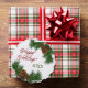 Contemporary Christmas holiday season ornament card with classic 'Happy Holidays' greeting wish on rustic green pinecone pine needles branches wreath motif on a crisp white background. With the option to customise or personalise with your family name and (limited) text of your choice.