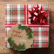 Contemporary Christmas holiday season ornament card with classic 'Happy Holidays' greeting wish on rustic green pinecone pine needles branches wreath motif on a faux brown kraft paper background. With the option to customise or personalise with your family name and (limited) text of your choice.