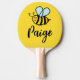 Custom ping pong paddle with cute honey bee drawing and name. Personalized sports gift for kids.