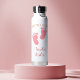 Celebrate the anticipation of a baby girl's arrival with this adorable personalised water bottle! Featuring pink baby footprints and the phrase “See You Soon,” this design includes custom text for a special aunt, grandma, or loved one. A heartwarming gift for pregnancy announcements, baby showers, or long-distance family.