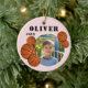 Custom Pink Basketball Ball Sports Photo Ceramic Ornament. Ornament with basketball balls, a custom name and a photo in a round frame.