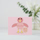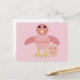 This postcard features a cute cartoon of a pink chick. The chick has a pale pink belly and darker pink wings and head with a yellow beak and feet. Next to the chick is a small egg.