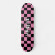 Skateboard with fun funky black and pink coloured racing flags check pattern design. Stylish original and cool cover for the trend-savvy and art-loving hip trendsetter, trendy look style motif lover.