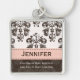 This beautiful, custom pink and brown vintage slightly distressed damask keychain can be personalised with a name and whatever else you would like to say on two lines below it. Designed by Chrissy H. Studios, LLC.