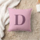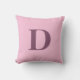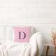 This is a pretty pink 16 inch square throw pillow. The pillow features two pretty comfort colours. Show your style by accenting your home with custom pillows from Zazzle. Made from high-quality Simplex knit fabric, these 100% polyester pillows are soft and wrinkle-free. This pillow features a Pink Blossom Comfort Colour as the basic pillow colour and a Berry Comfort Colour for the Monogram D. The D Monogram is on the front of the pillow. The heavyweight stretch material provides beautiful colour definition for your design while also being the perfect complement to your sofa!