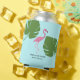 This can cooler features my pink flamingo tropical illustration with green monstera leaves. Inspired by my recent tropical vacation. You can customise the words and include your names, perfect for giveaways for a destination wedding favours.